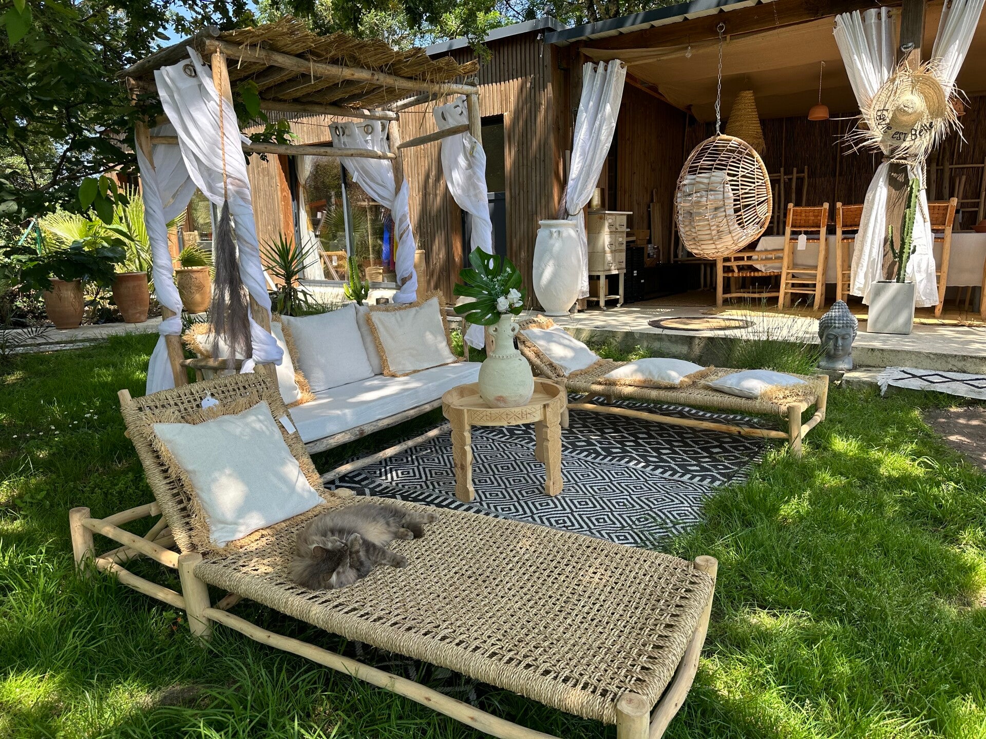 Bain de soleil en bois d'eucalyptus et doum très à la main par nos artisans