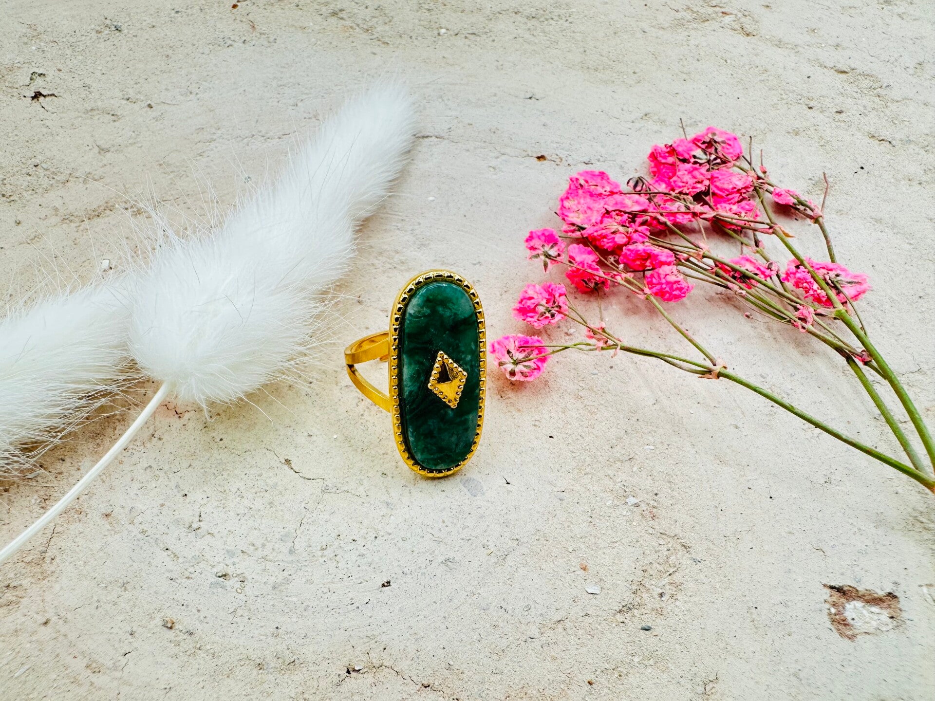 Bague en acier inoxydable et pierre naturelle