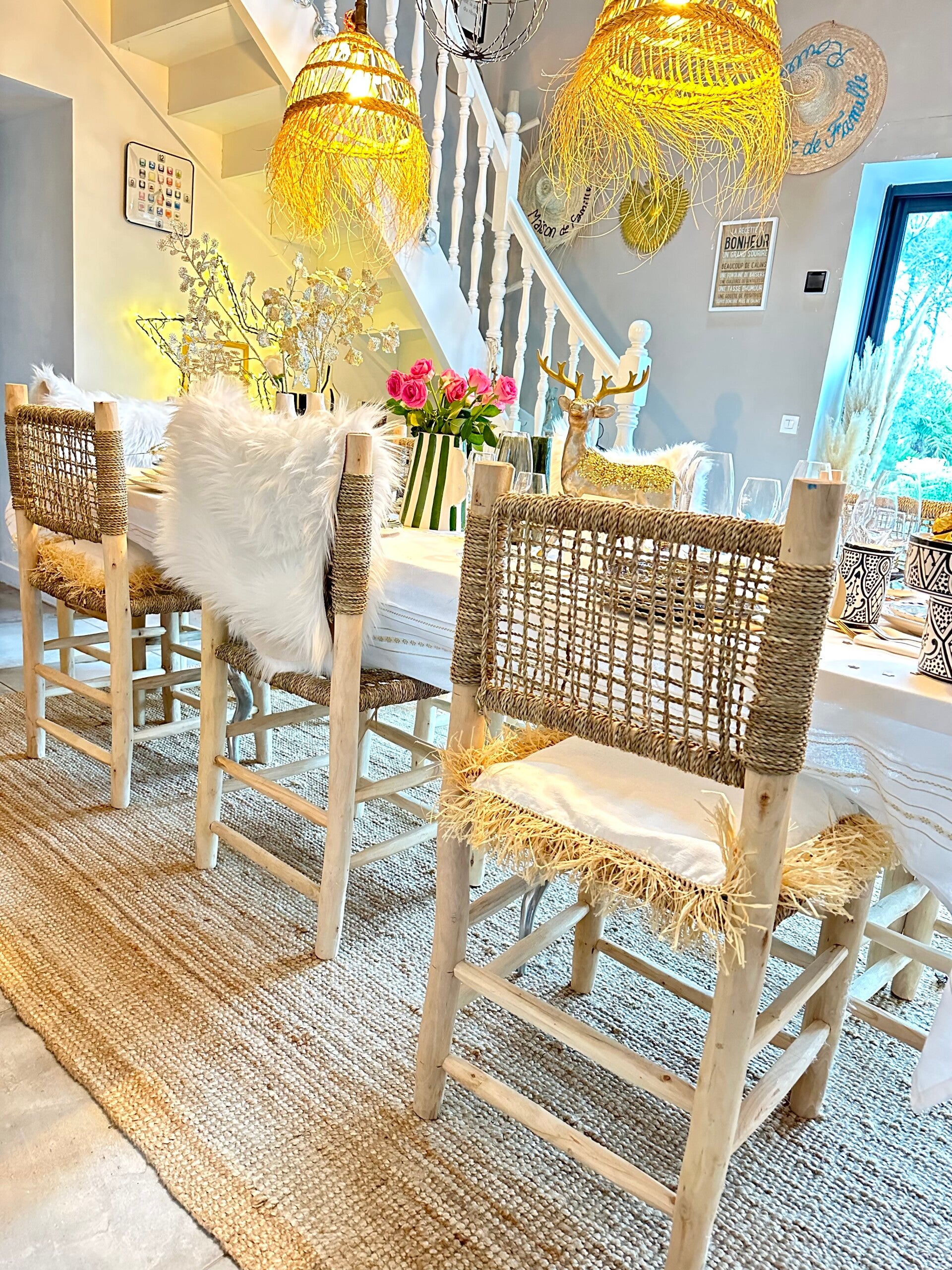 Assise et dossier en feuille de palmier tressé hauteur d'assise 51cm.