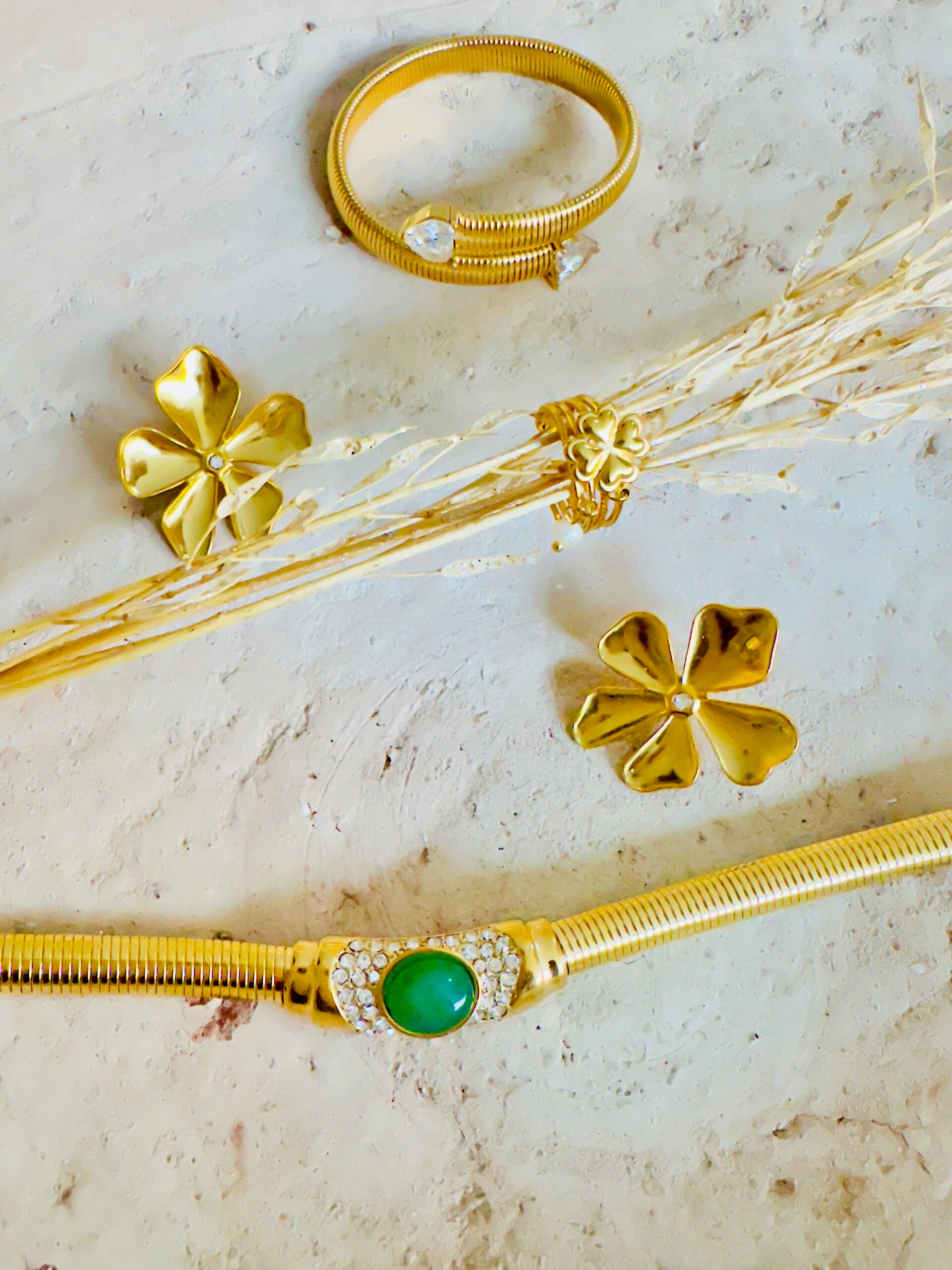 Boucles, collier, Jonc et bague en acier inoxydable.