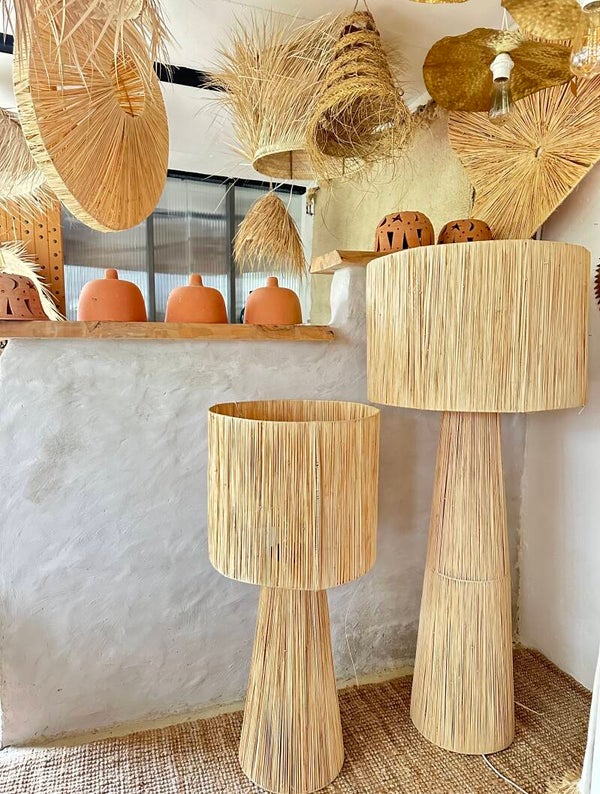 Lampadaire en fer et raphia .