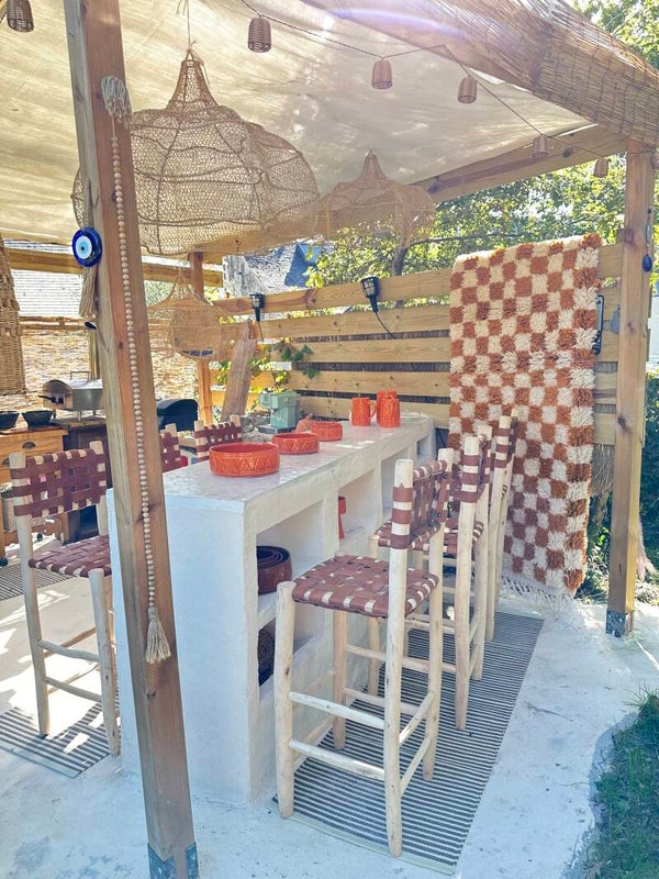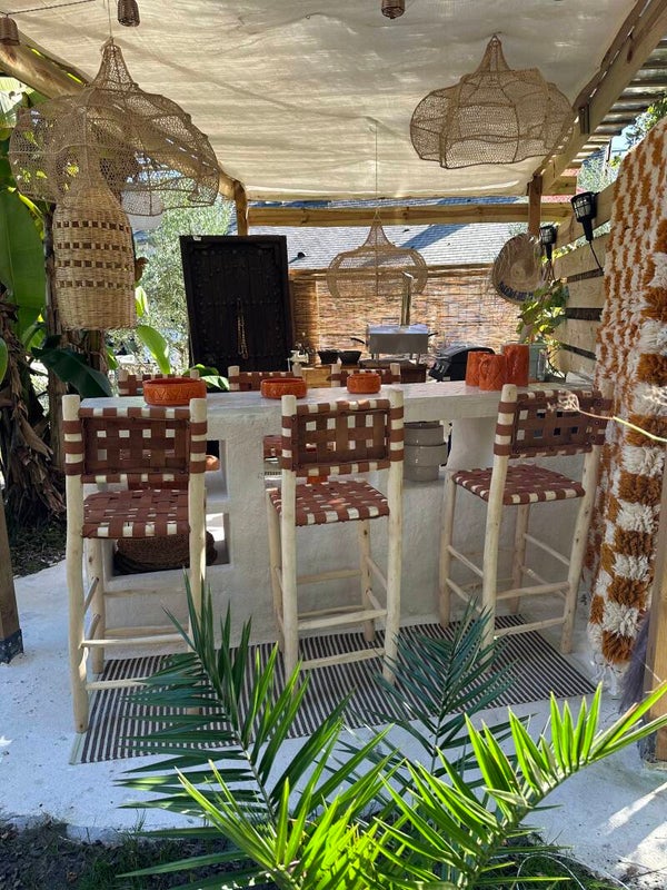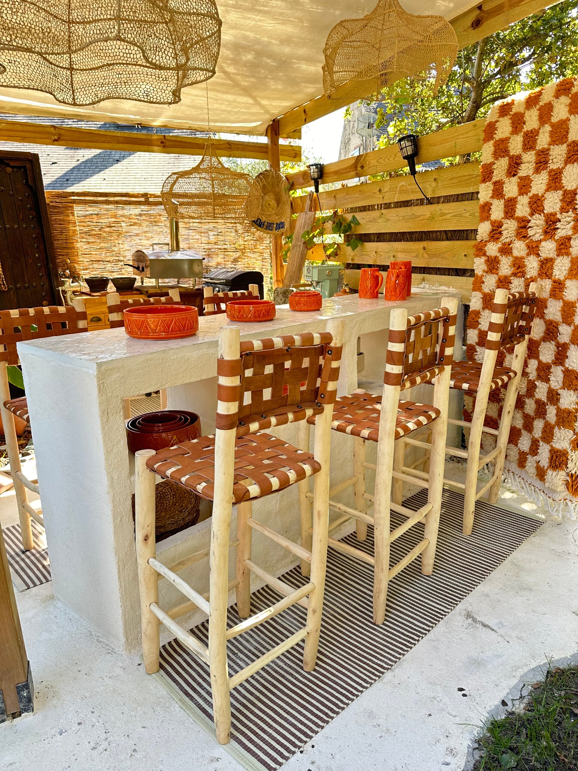 Chaise de bar en cuir et bois d'eucalyptus ✨