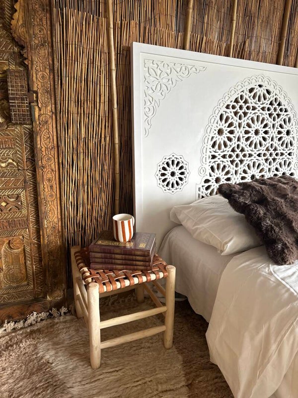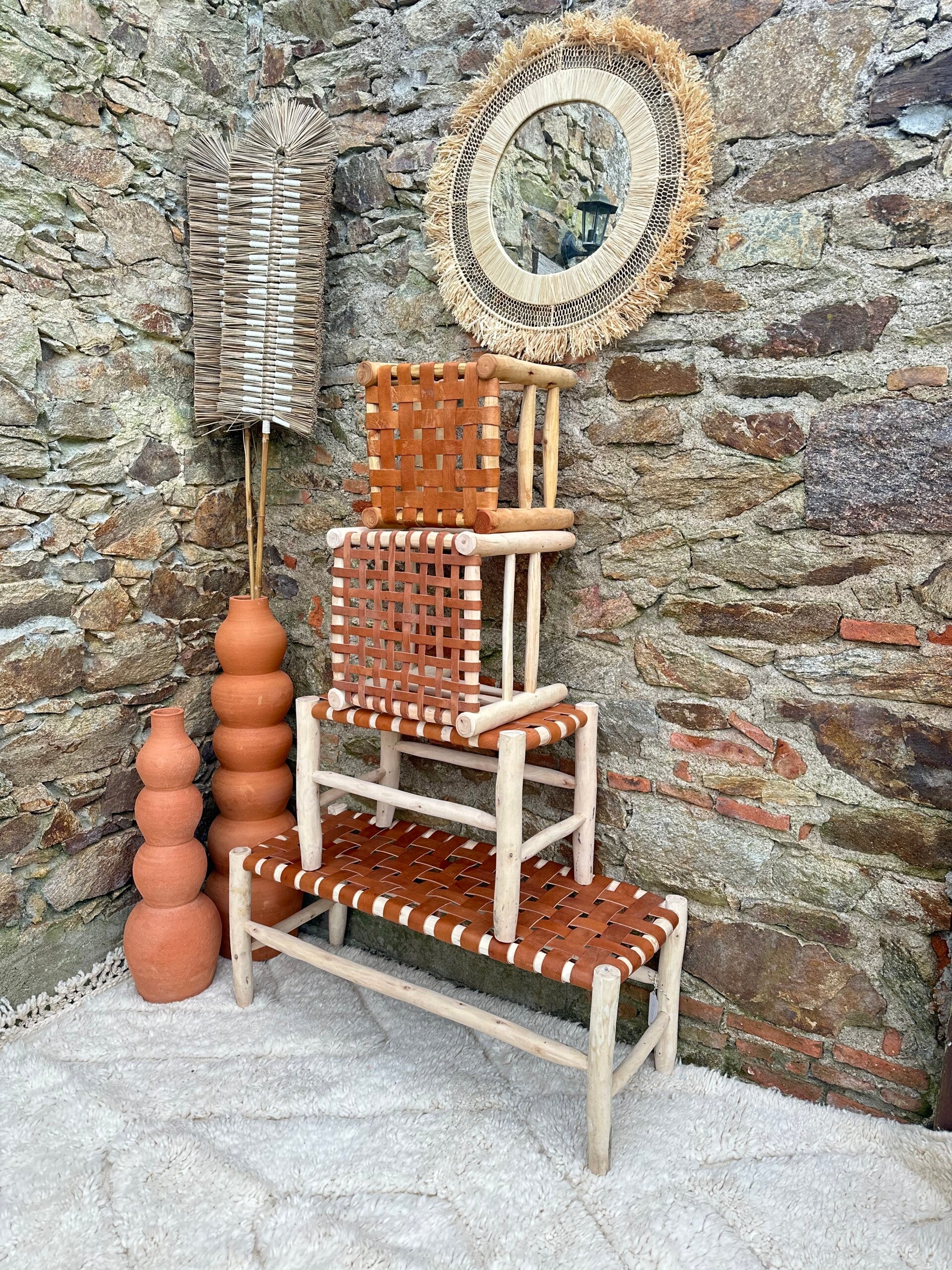 Banc en cuir de chameau fabriqué avec amour par nos artisans.