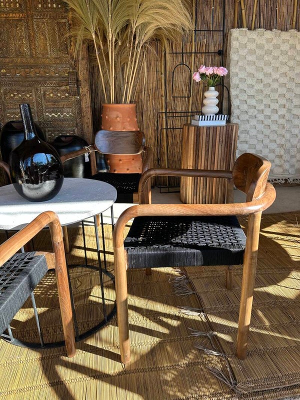 Alliance parfaite entre tradition et modernité, cette chaise en bois de noyer massif séduit par ses lignes épurées et son caractère authentique. Son assise tressée en corde noire, réalisée à la main, apporte confort et raffinement.