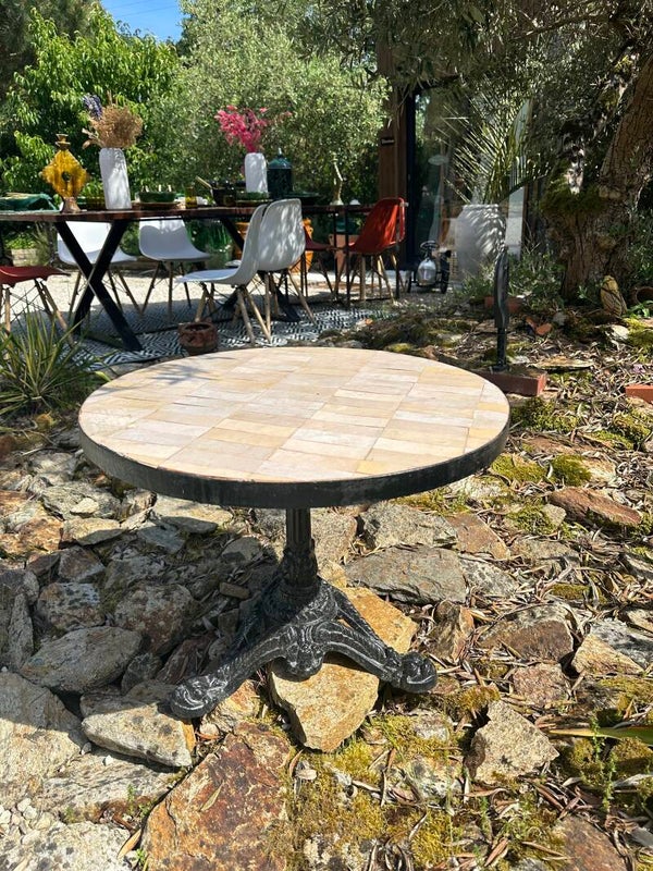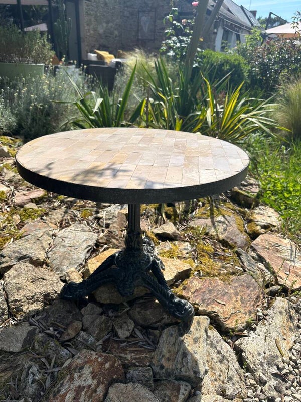 Avec son plateau en zellige beige fait à la main et son pied en fonte au charme intemporel, cette petite table ronde incarne l’esprit bohème et méditerranéen de Makasbah.