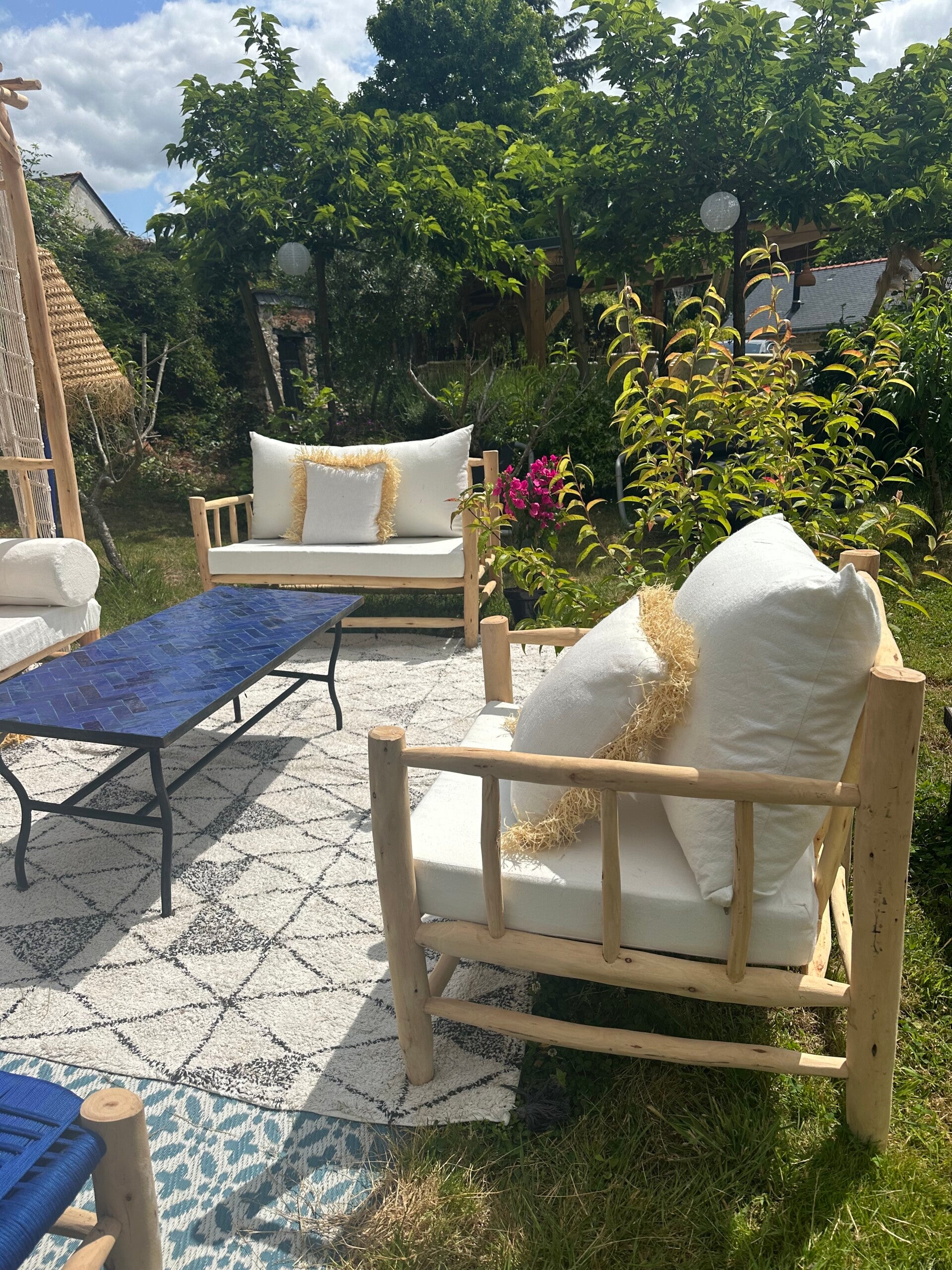 Un fauteuil confortable et solide, parfait pour une ambiance bohème, naturelle ou méditerranéenne.