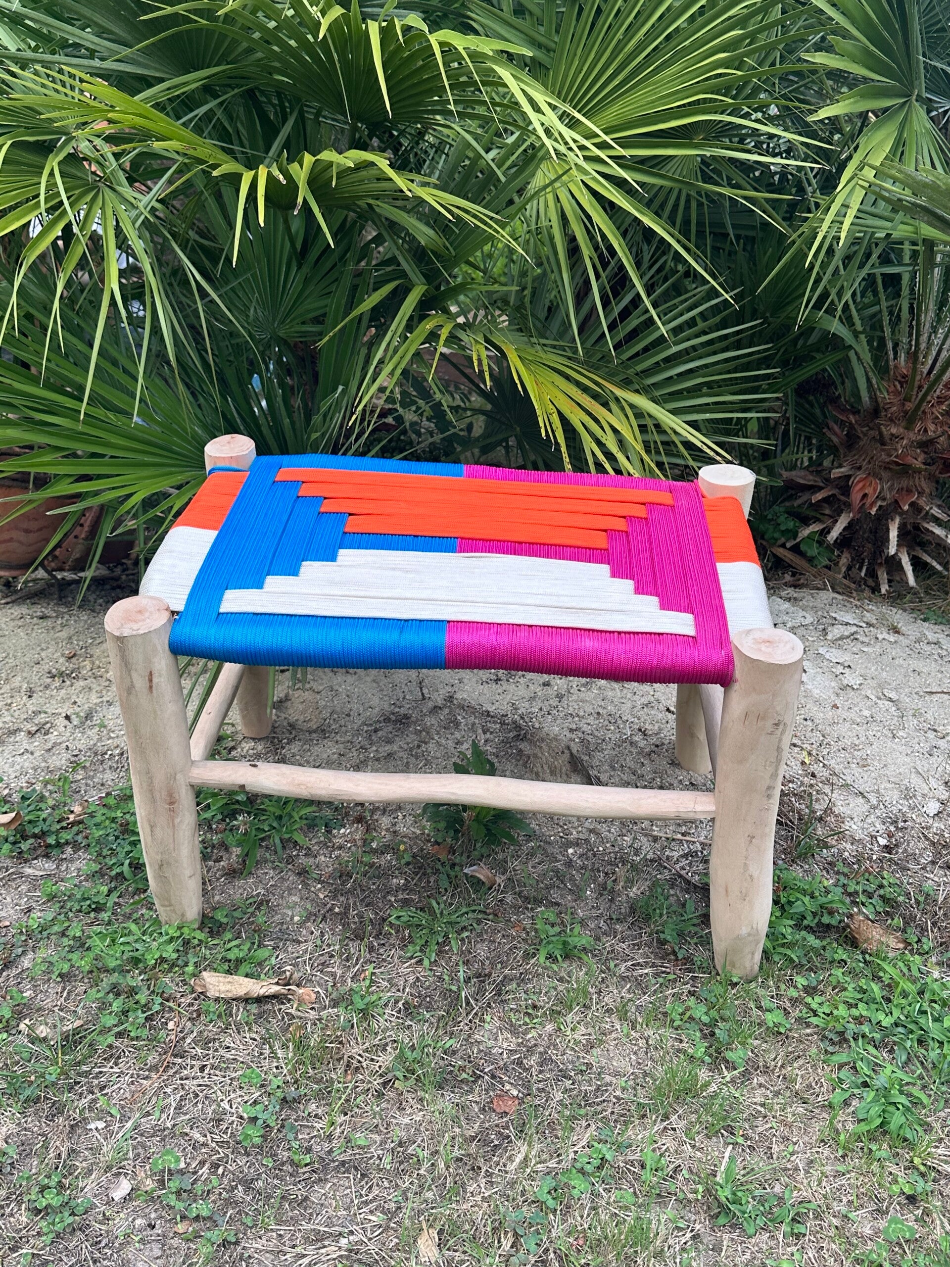Ce banc apporte une touche joyeuse et vivante à votre intérieur grâce à son cuir tressé aux multiples couleurs. Chaque pièce est unique, tressée à la main, et montée sur une structure en bois naturel solide et chaleureuse.