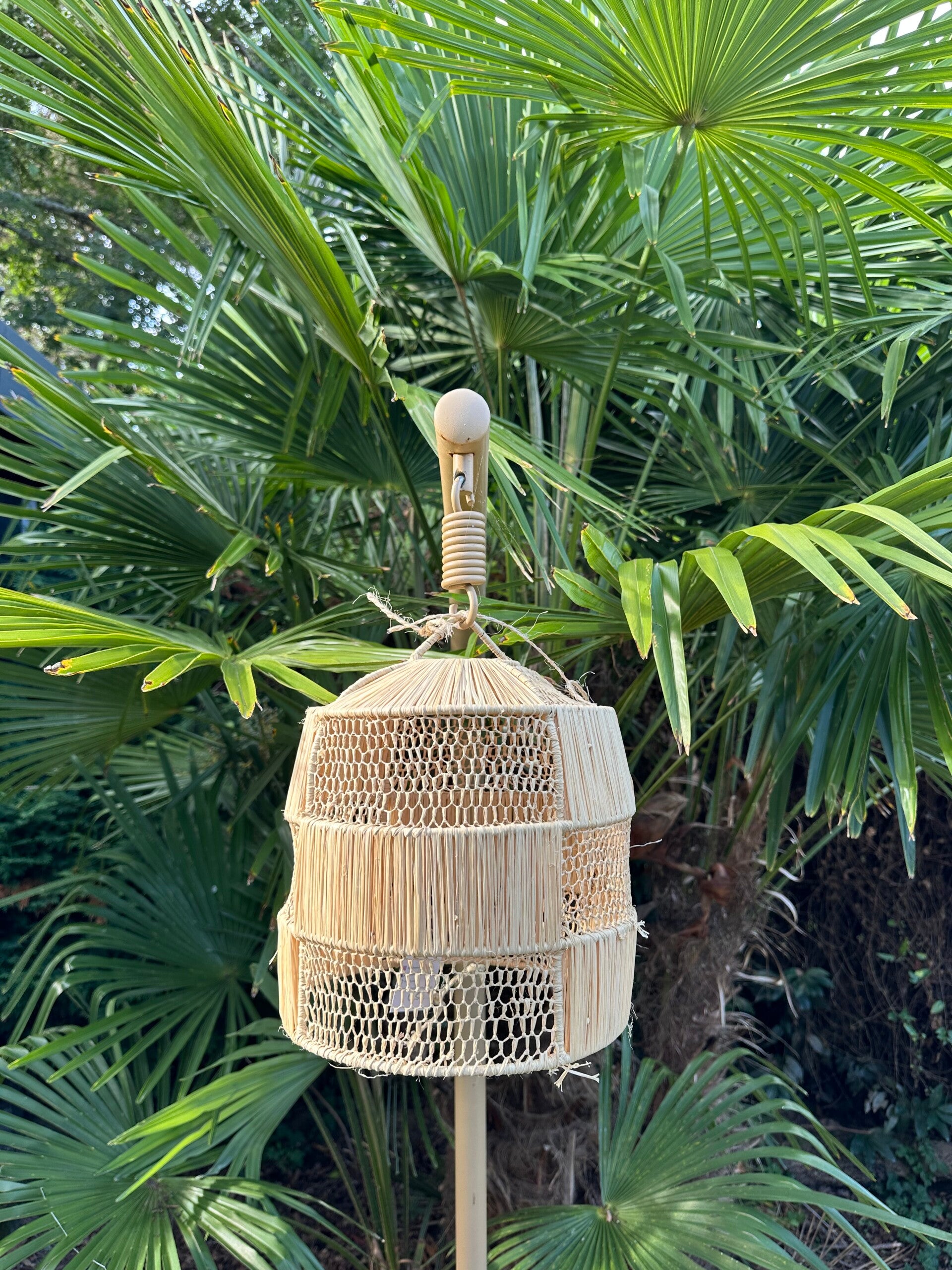 Avec ses lignes délicates et sa taille plus discrète, cette suspension tressée à la main s’invite dans les petits espaces ou en accumulation. Elle diffuse une lumière chaleureuse et naturelle, parfaite pour créer une ambiance douce et apaisante.