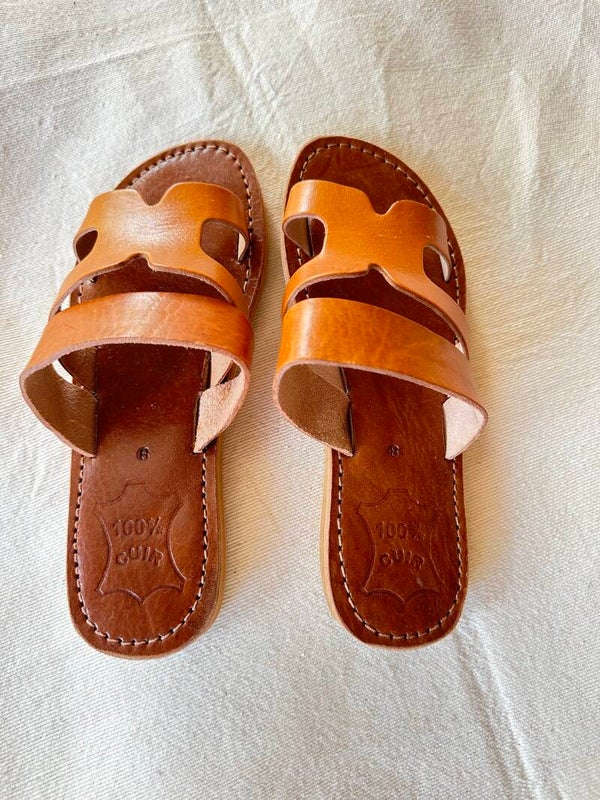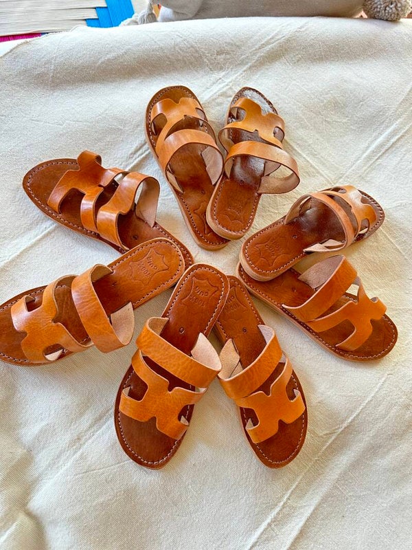 Épurées, naturelles et intemporelles, nos sandales marocaines en cuir nude sont fabriquées à la main dans les ateliers traditionnels du Maroc.