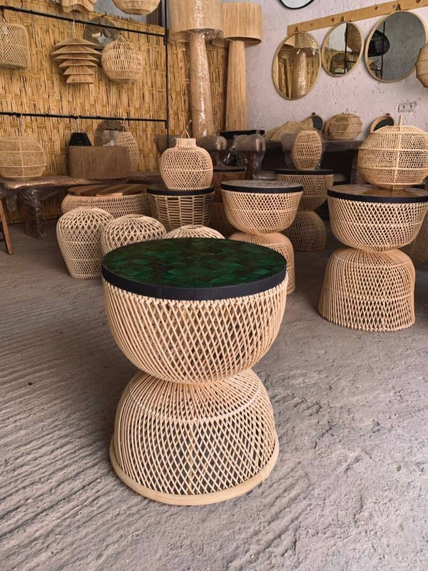 Table d’appoint en zellige & rotin tressé