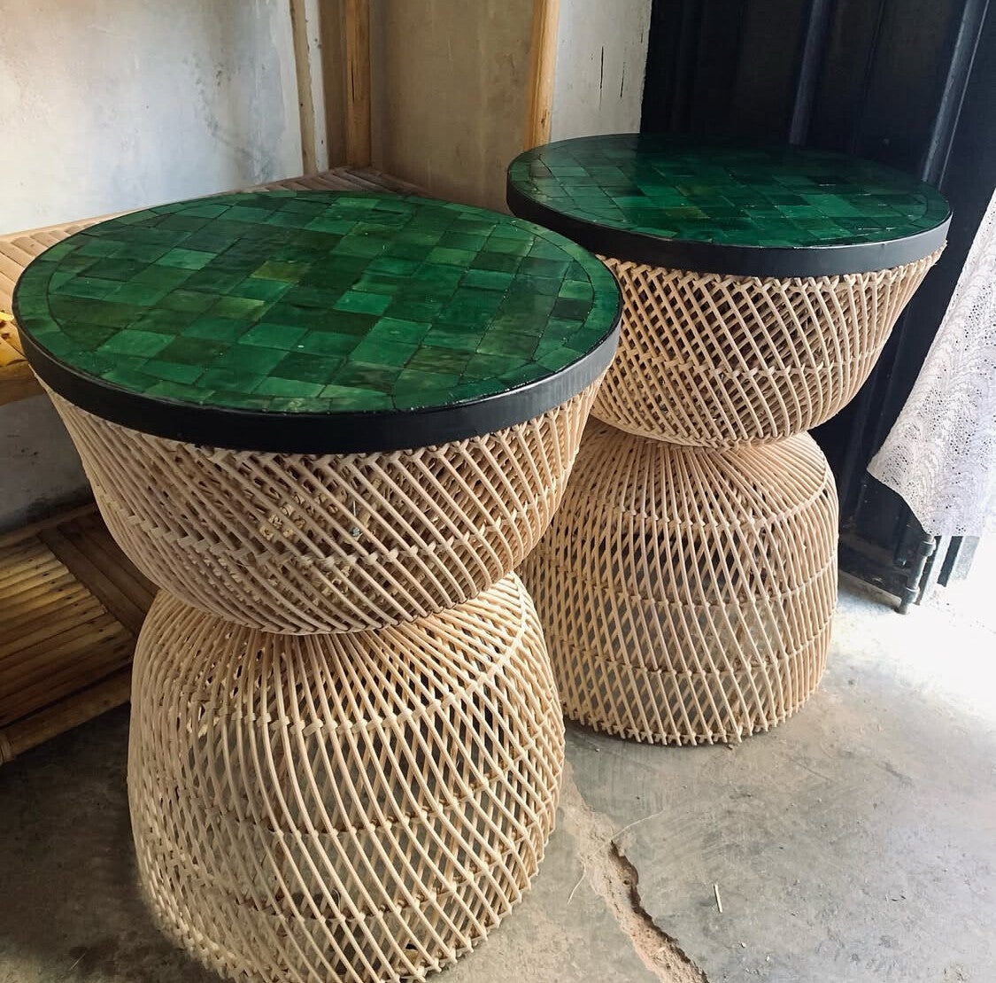 Le plateau en zellige offre une touche raffinée et profonde, tandis que la base en rotin tressé apporte légèreté, chaleur et authenticité bohème.