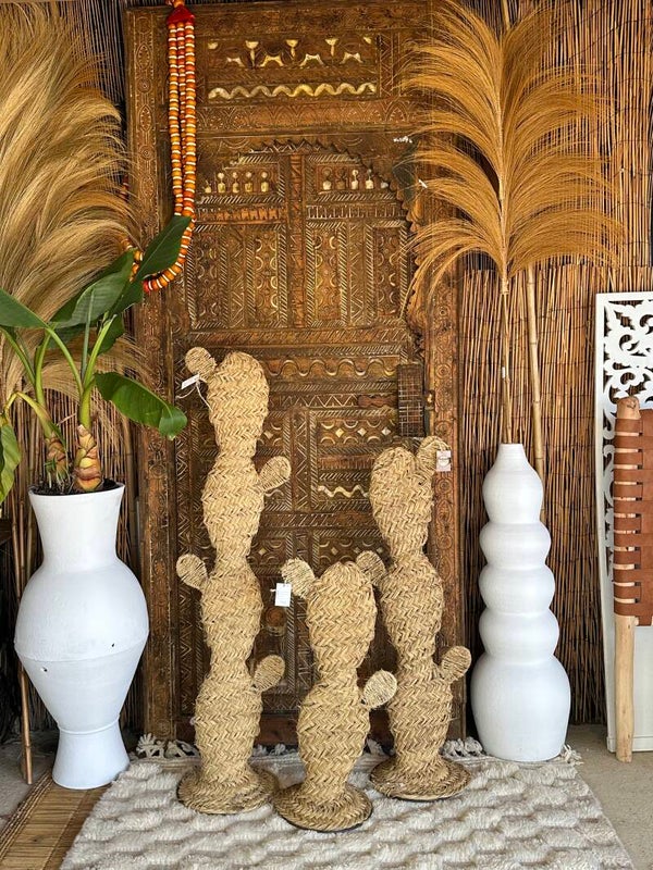 Découvrez nos cactus décoratifs en paille tressée, entièrement réalisés à la main.