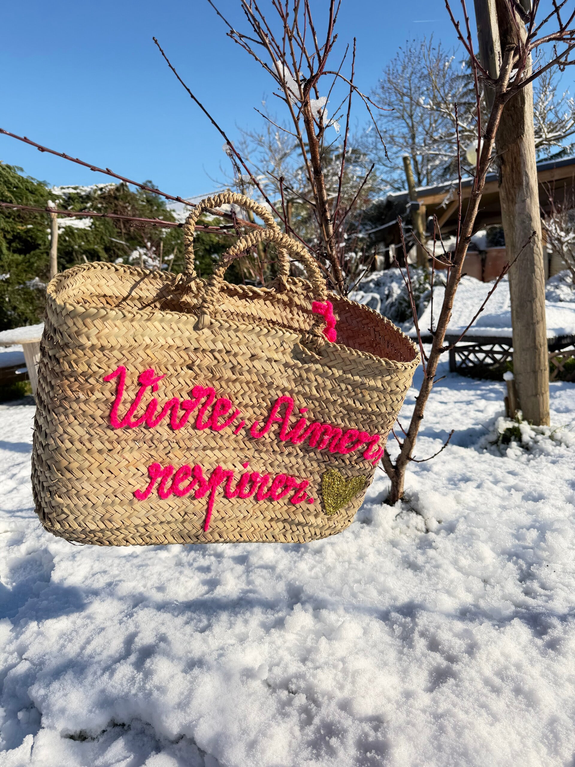 Panier en palmier brodé