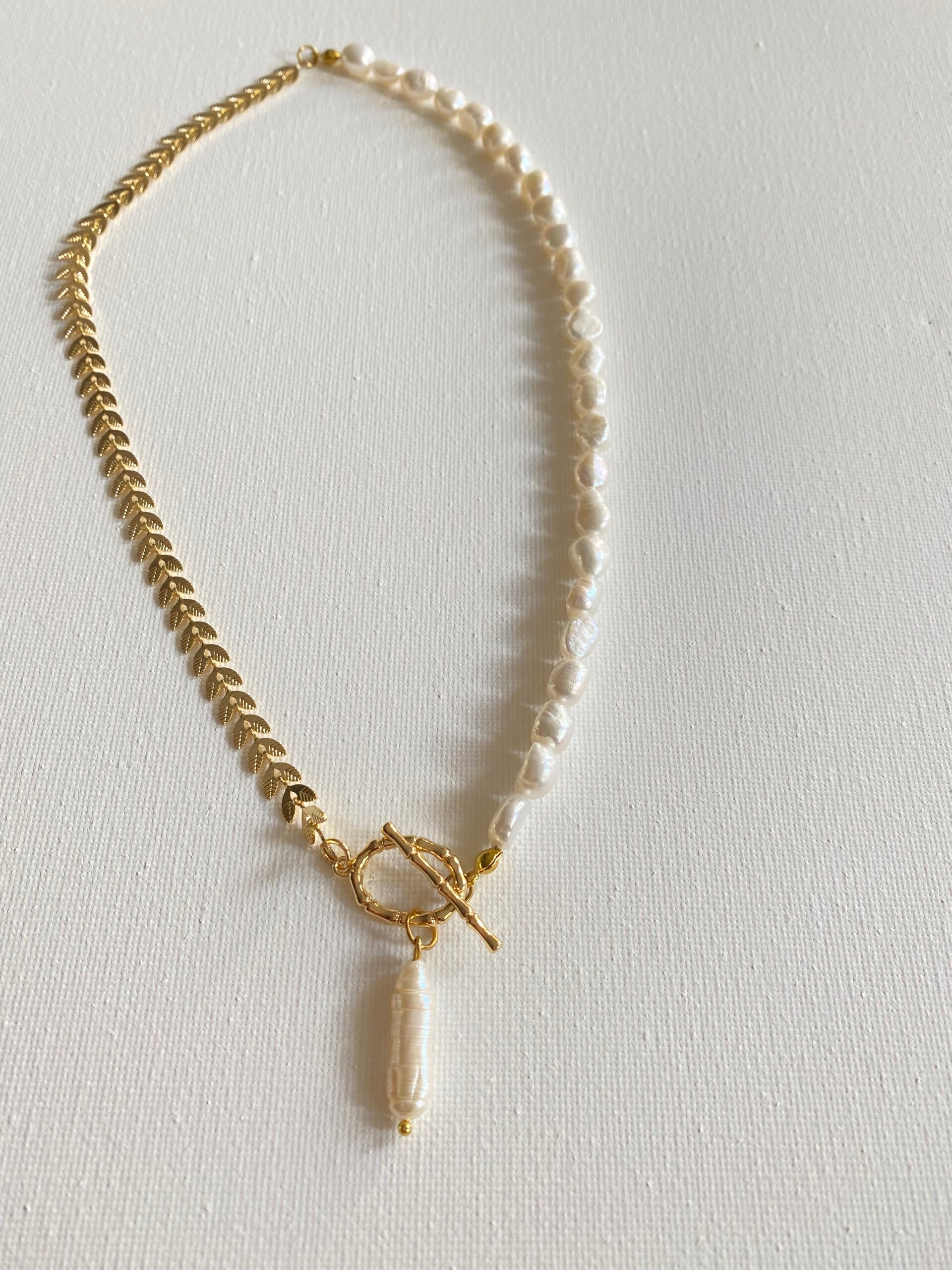 Collier en acier inoxydable et perles naturelles d'eau douce.