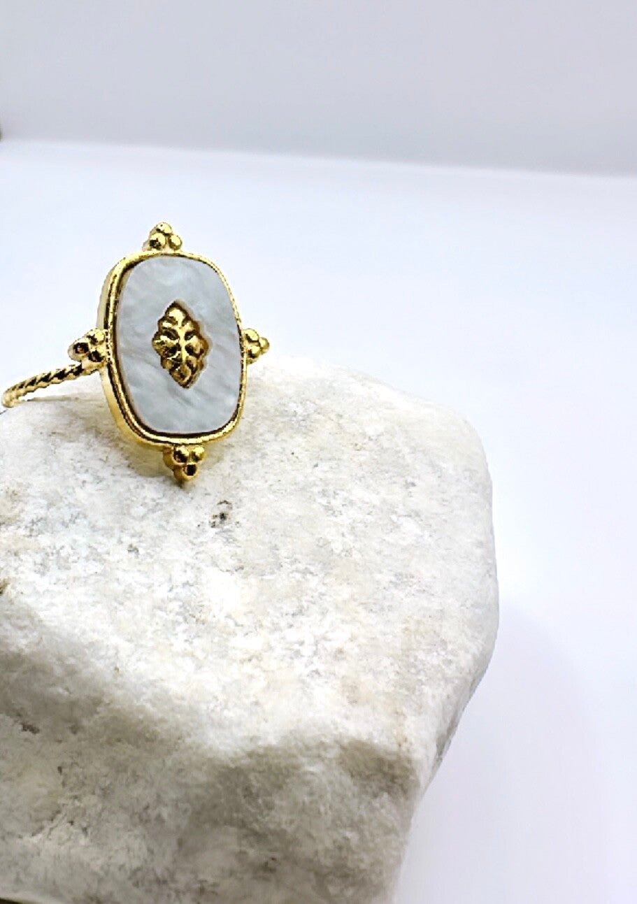 Bague en acier inoxydable et pierre naturelle